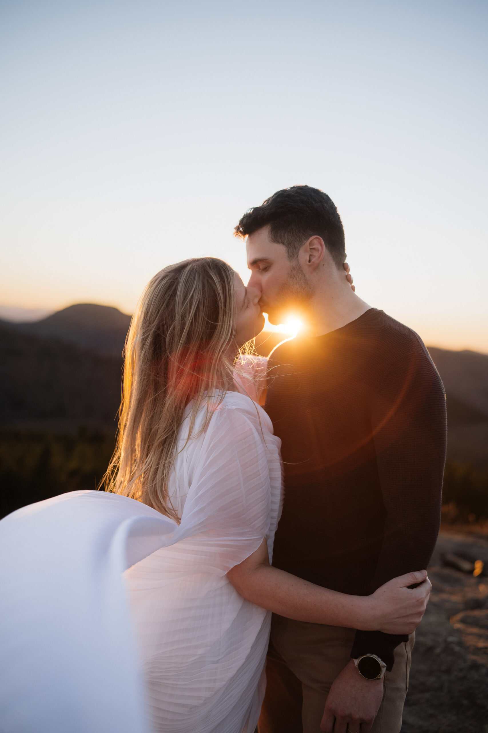 Intimate Sunset engagement session moment at Roan Mountain.